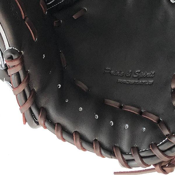 グラブに最適なしなやかさと耐久性をあわせ持つ厳選された北米原皮から日本のタンナーによって加工されたプロステイタスレザー仕様。