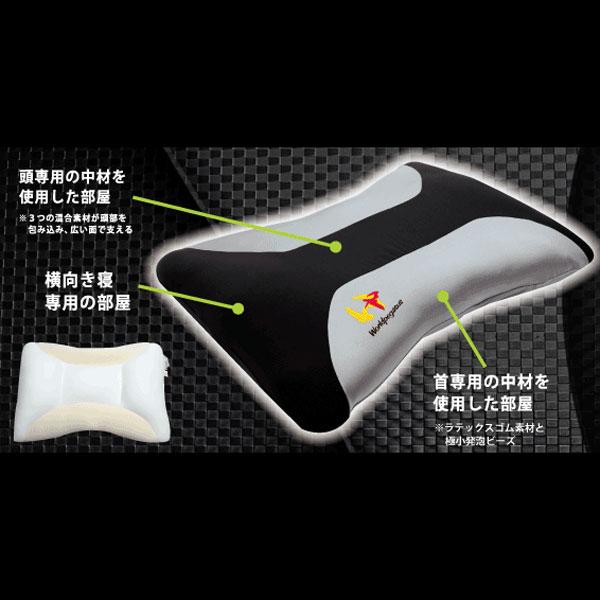 頭だけでなく、頭、首の広い面でサポートする枕。